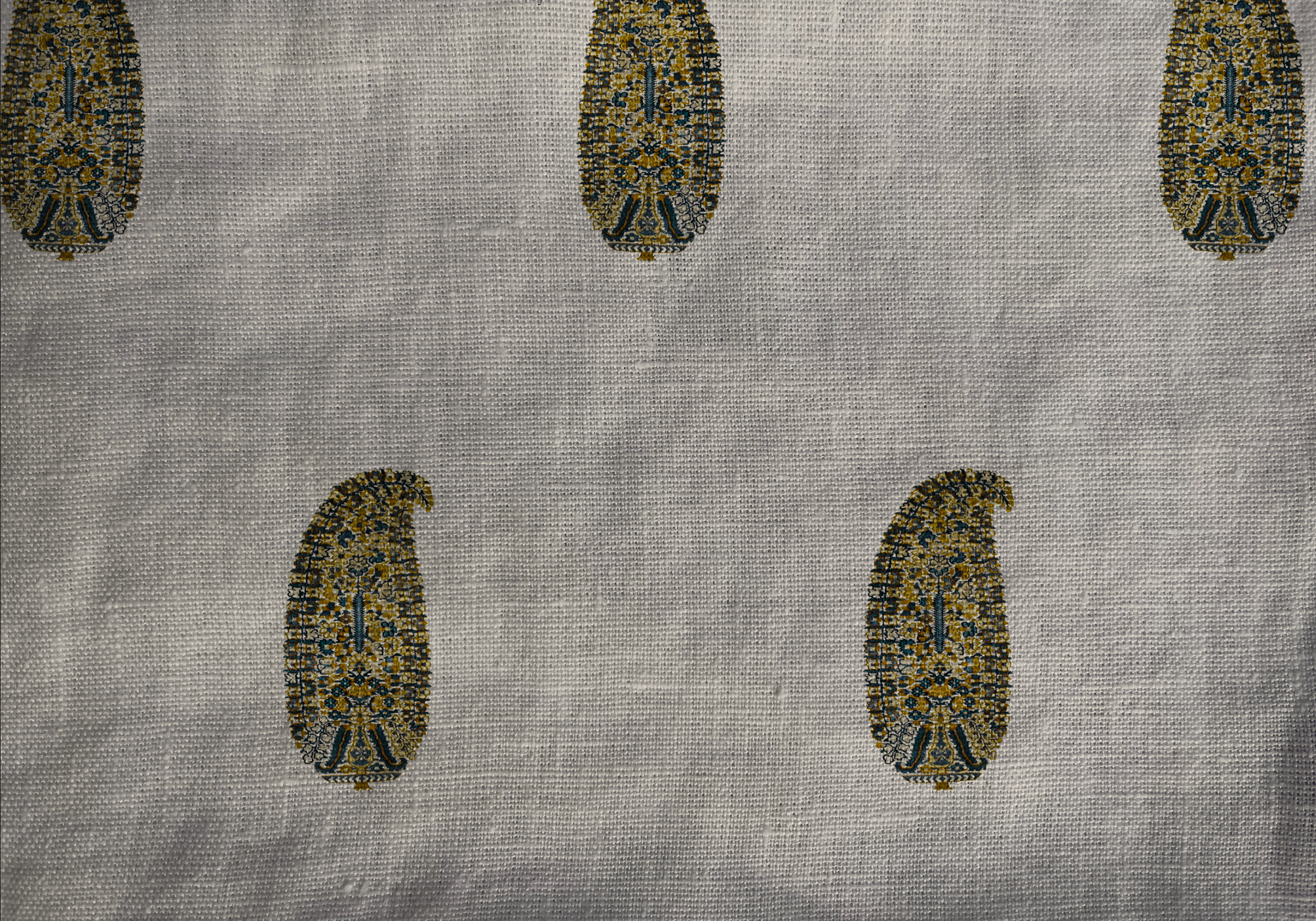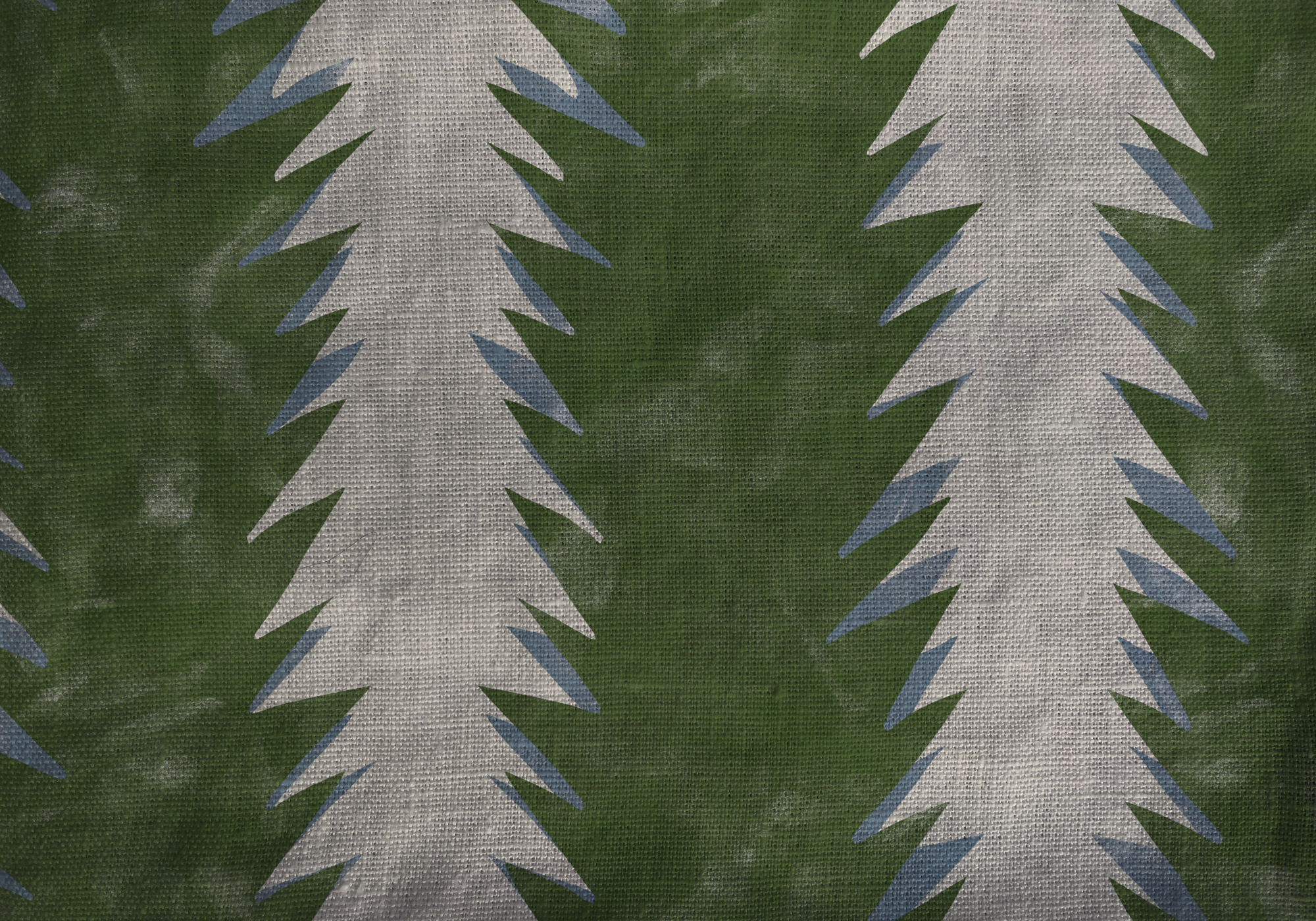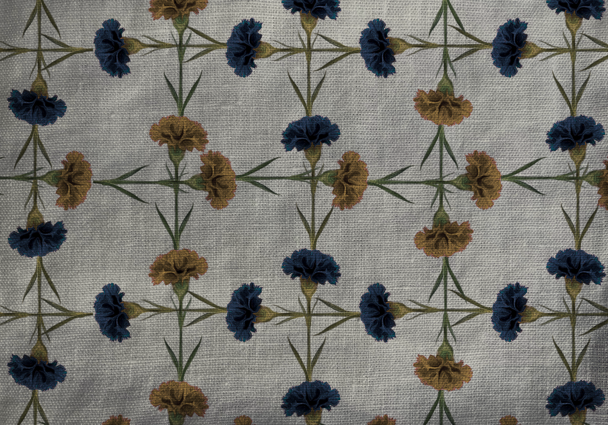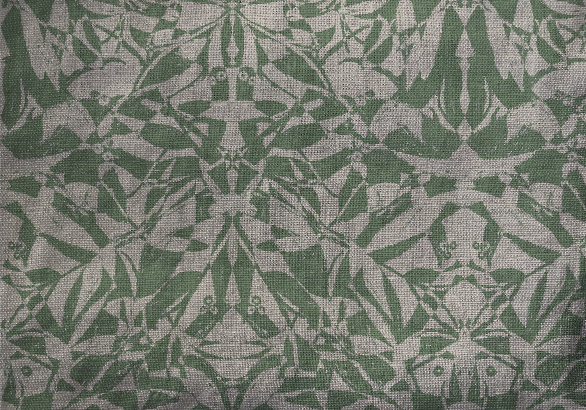 It brings together waves, geraniums, citrus trees, stripes and woven textures — interpreted through hand-drawing and collage. Designed to create balance and warmth in any space, the collection is printed sustainably in Europe on linen and wallpaper, and made to order.