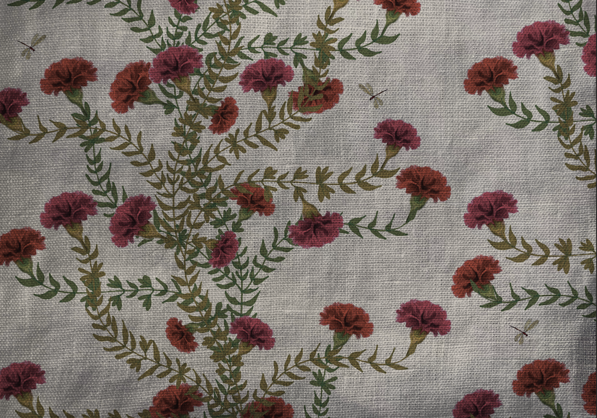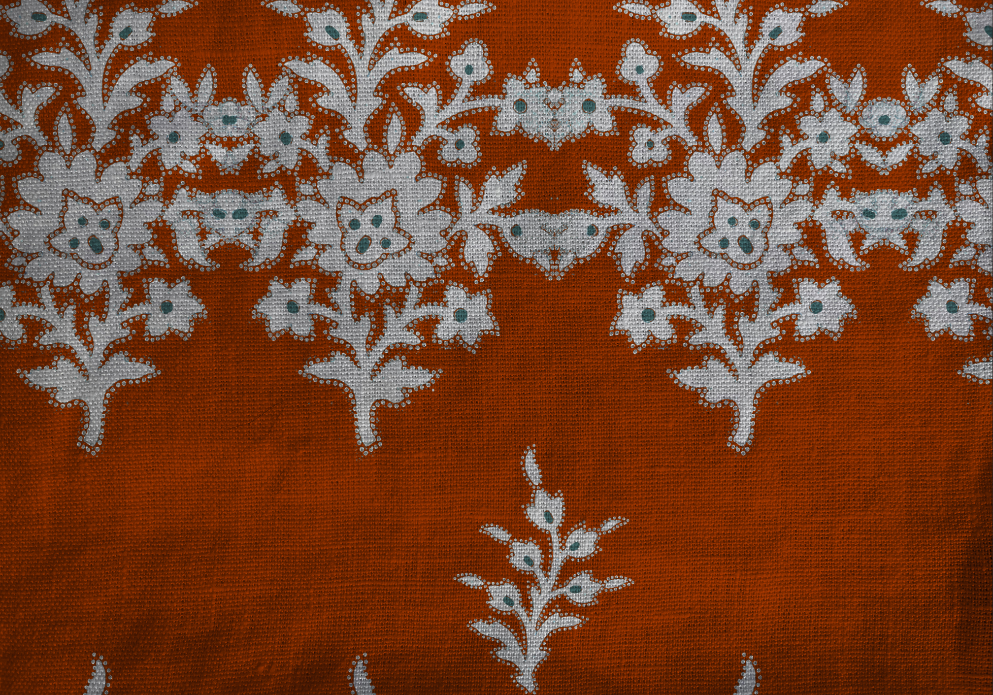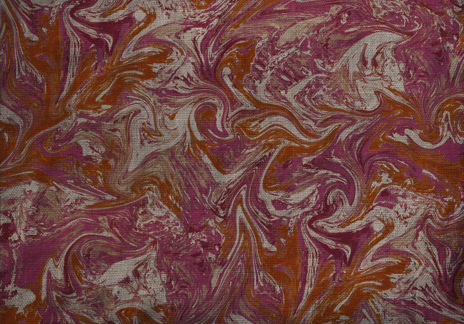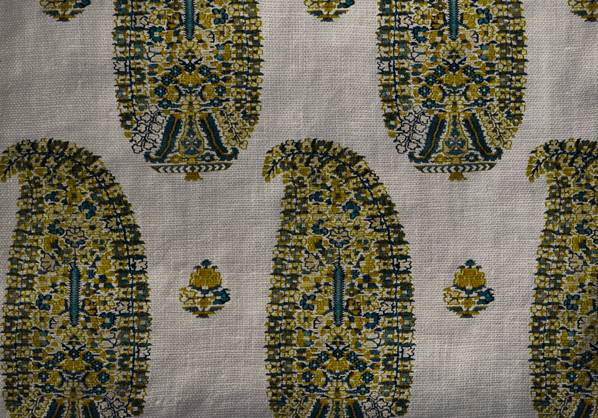 It brings together waves, geraniums, citrus trees, stripes and woven textures — interpreted through hand-drawing and collage. Designed to create balance and warmth in any space, the collection is printed sustainably in Europe on linen and wallpaper, and made to order.