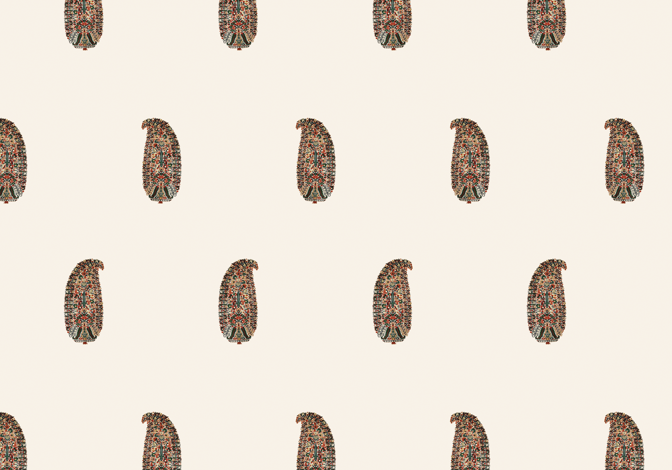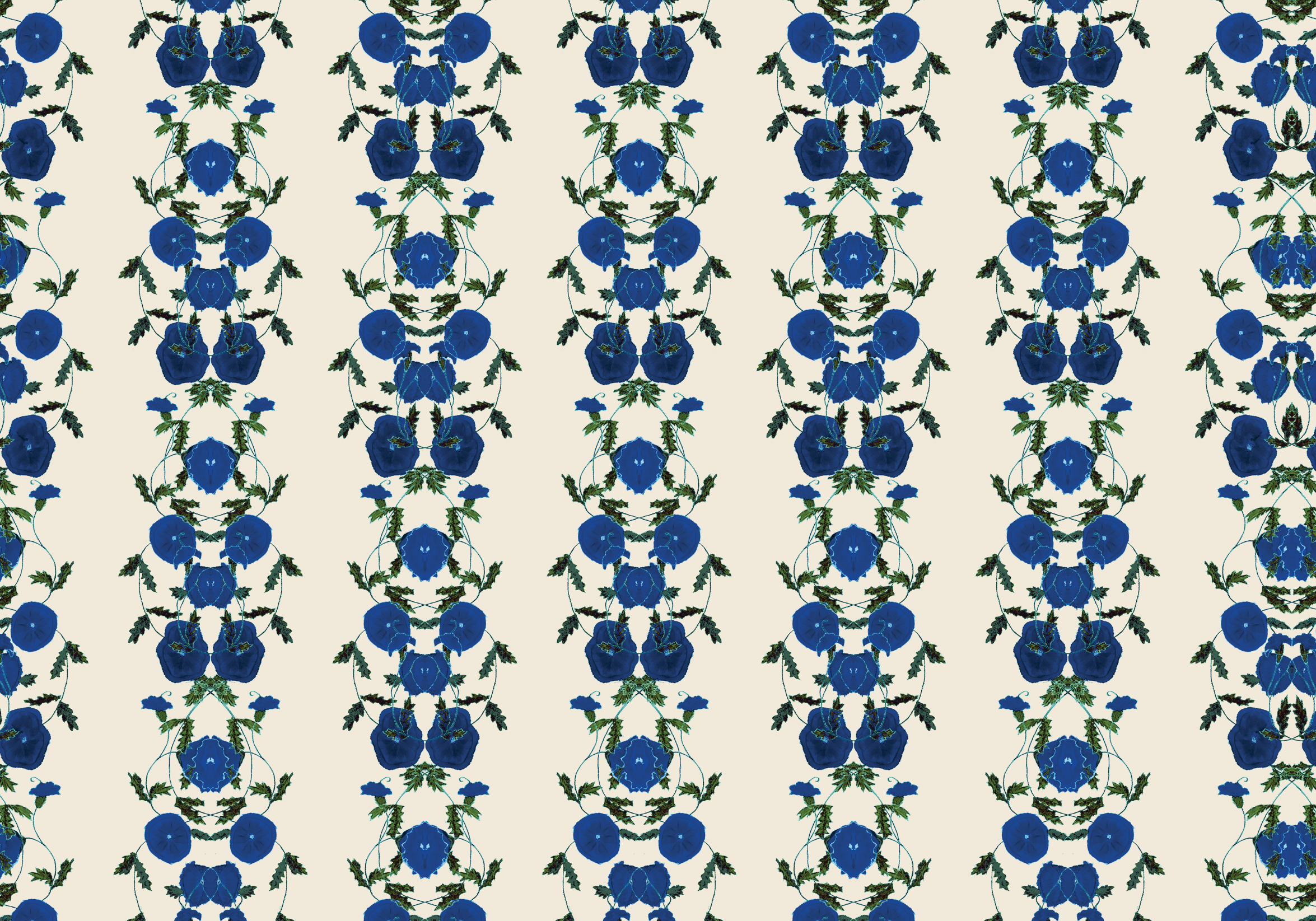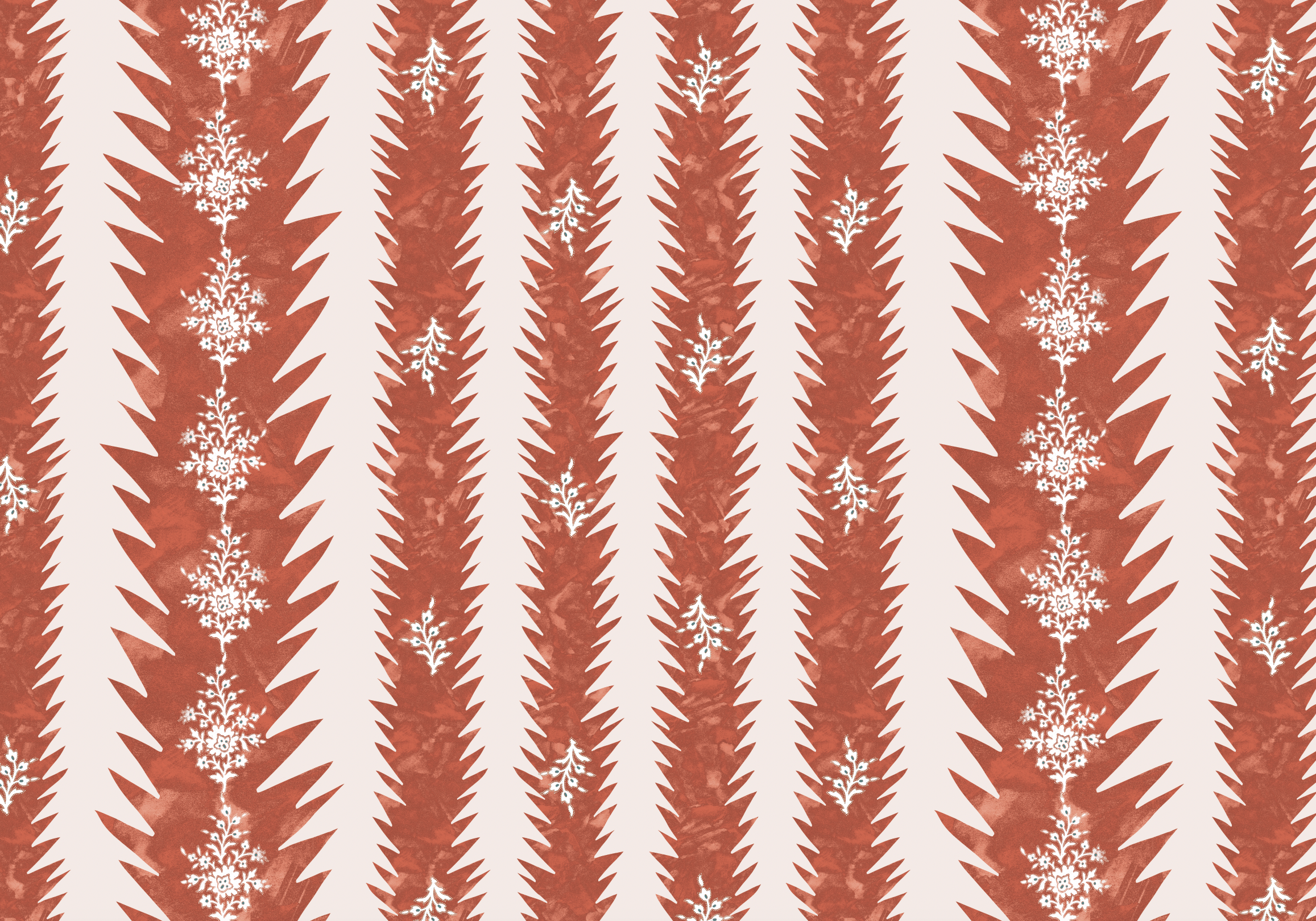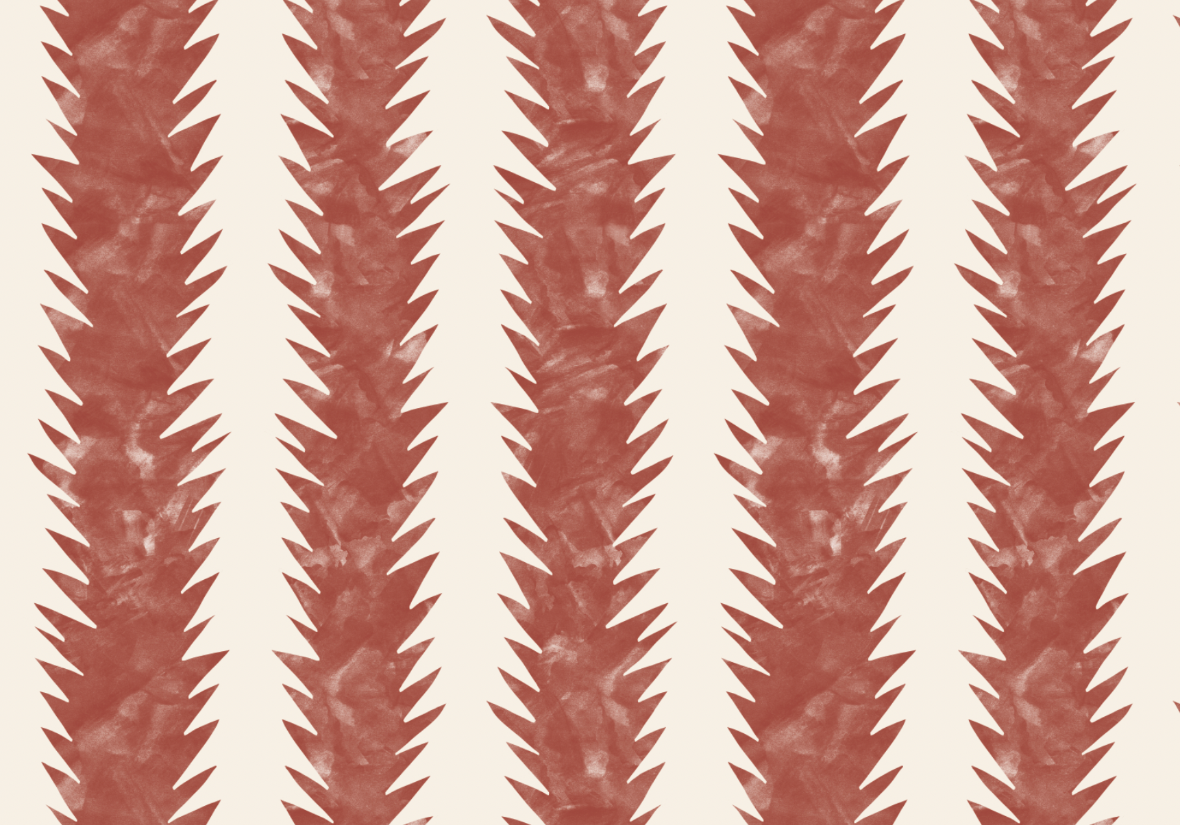 It brings together waves, geraniums, citrus trees, stripes and woven textures — interpreted through hand-drawing and collage. Designed to create balance and warmth in any space, the collection is printed sustainably in Europe on linen and wallpaper, and made to order.