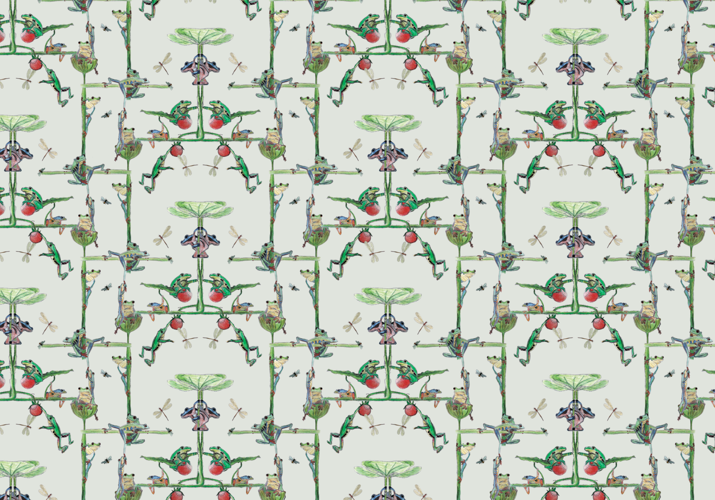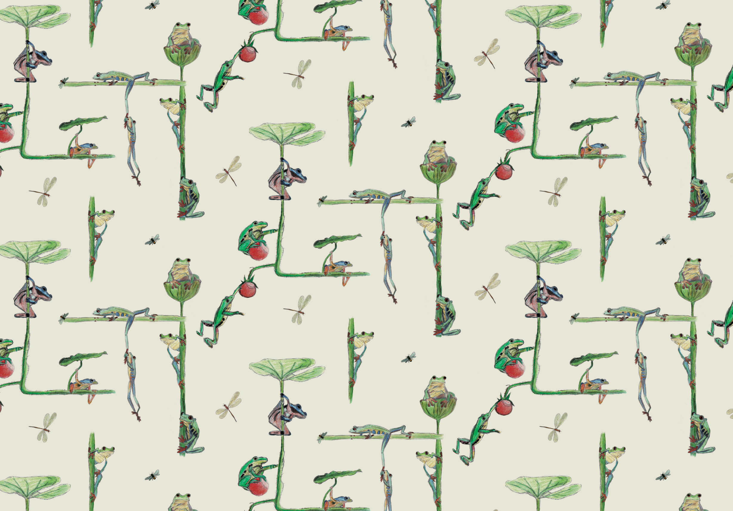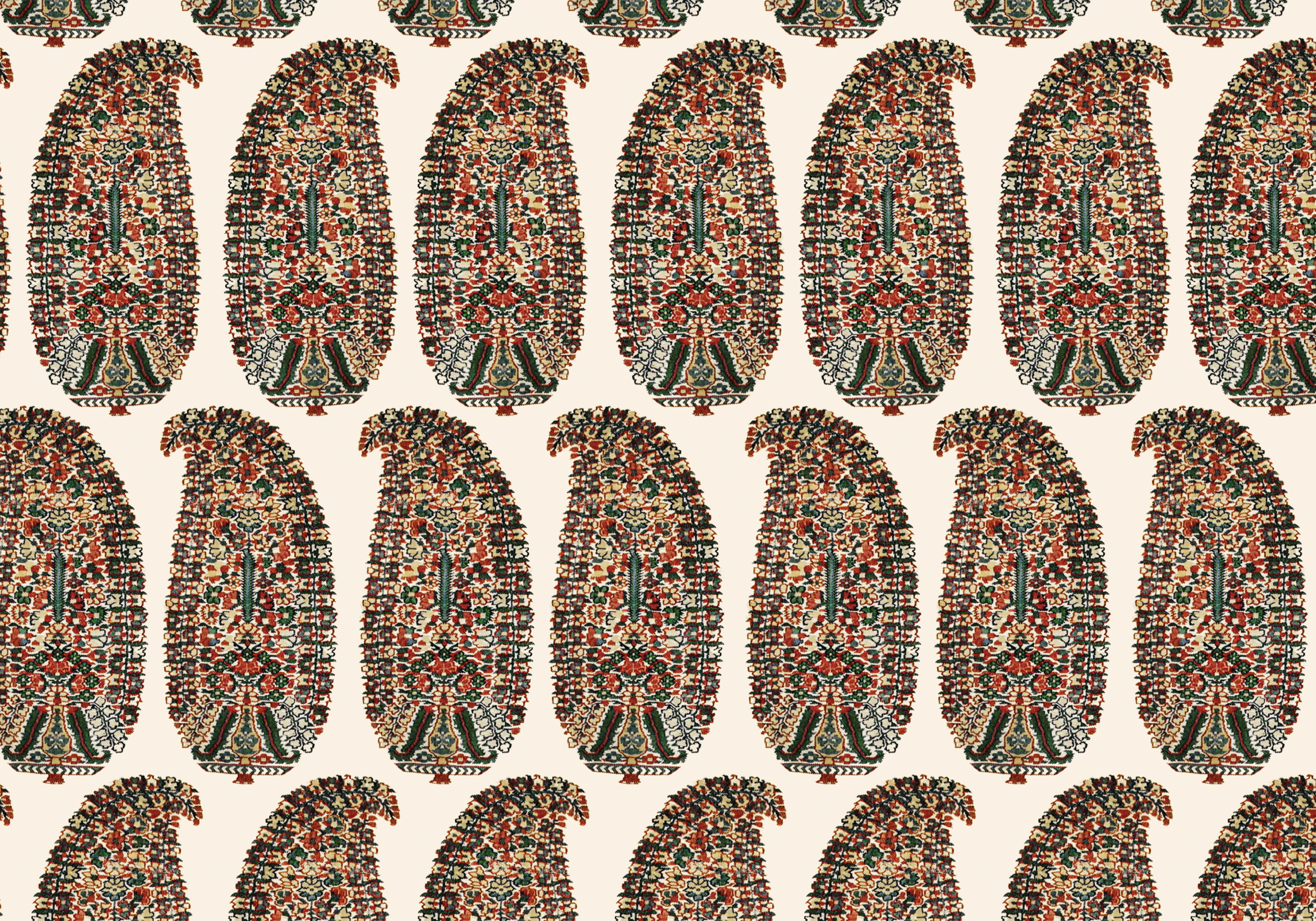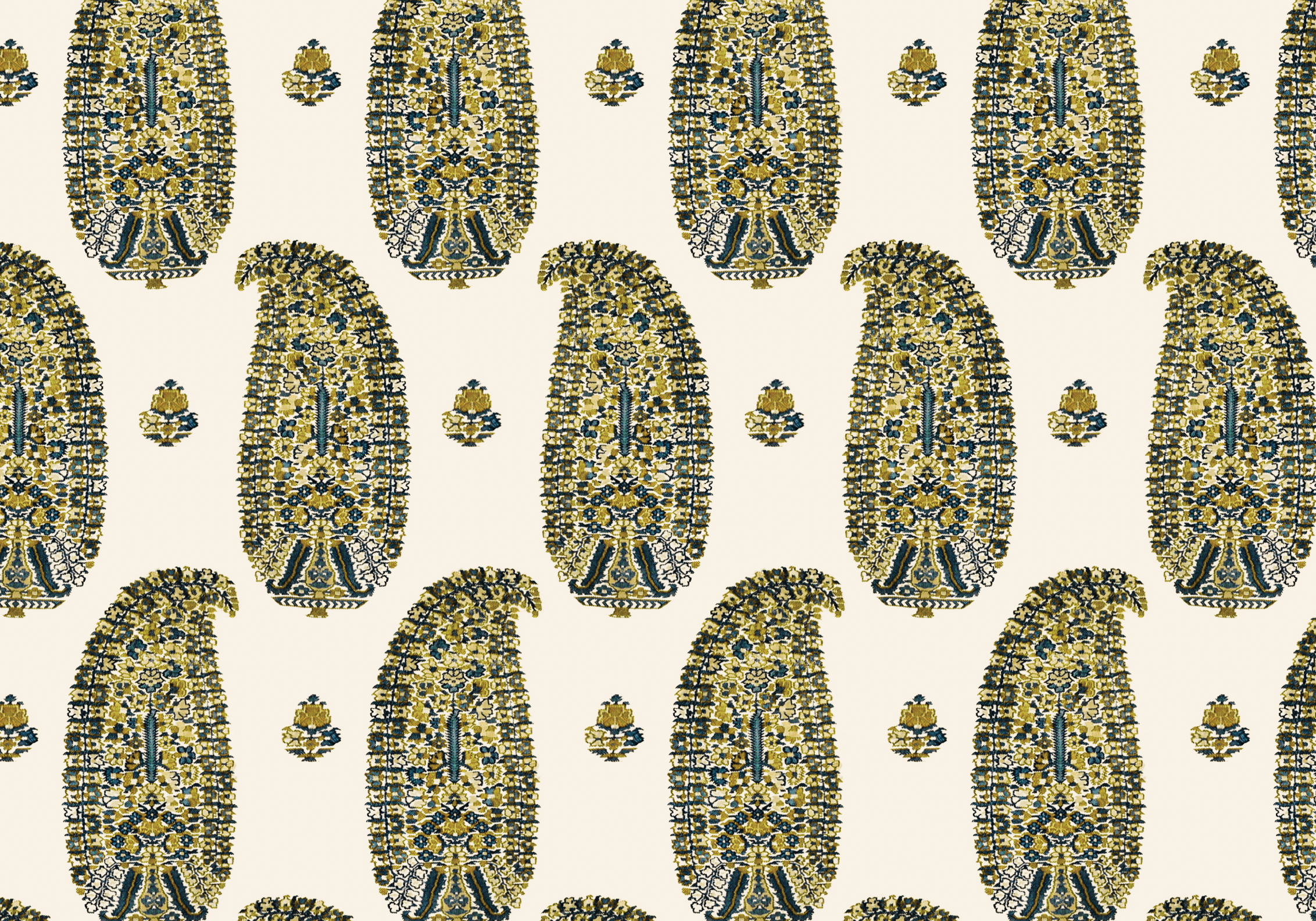 It brings together waves, geraniums, citrus trees, stripes and woven textures — interpreted through hand-drawing and collage. Designed to create balance and warmth in any space, the collection is printed sustainably in Europe on linen and wallpaper, and made to order.
