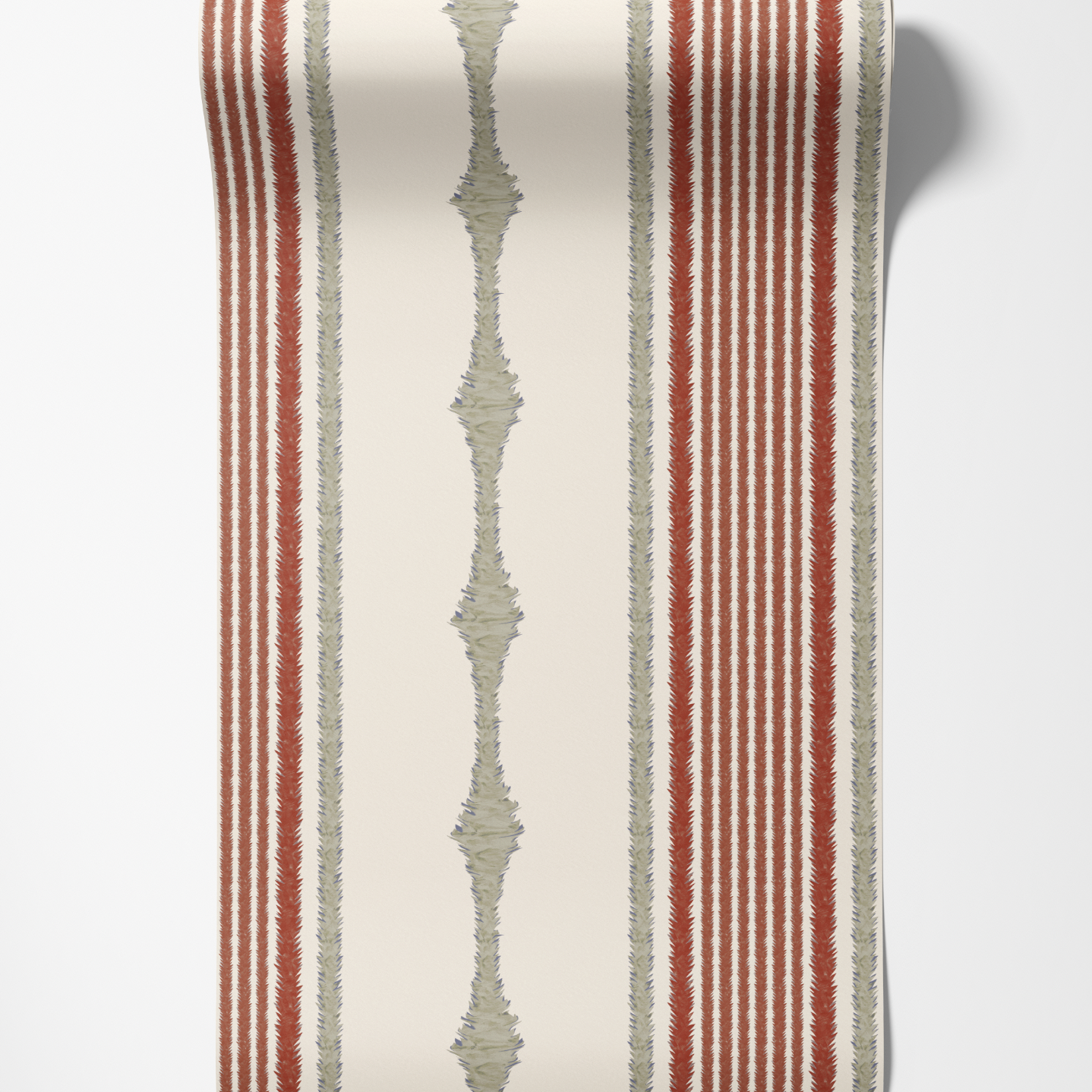 Introducing Atria Flow, a vertical stripe pattern that brings quiet movement and refined structure to any interior. Inspired by classical architecture and columnar rhythms, its alternating bands of texture and tone create a harmonious flow, ideal for elongating walls and adding height to a room. Sophisticated yet approachable, Atria Flow is available in Rose, Rouge, Ocean, Forest, Saffron, and Mocca. If you need to see a sample, send us an email at info@delacovadesign.com.