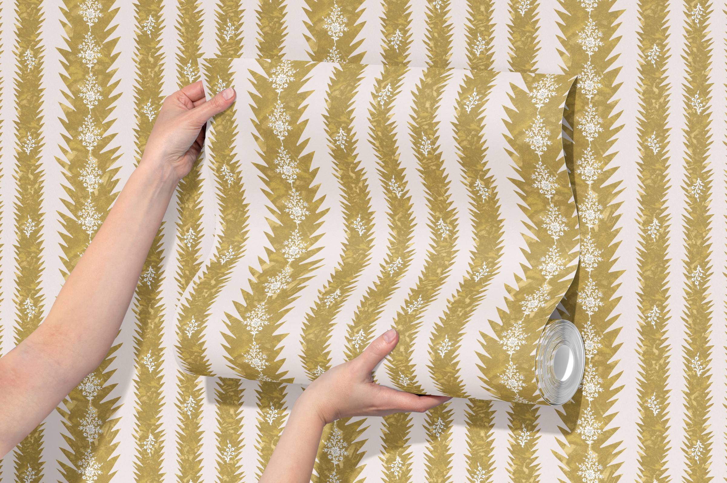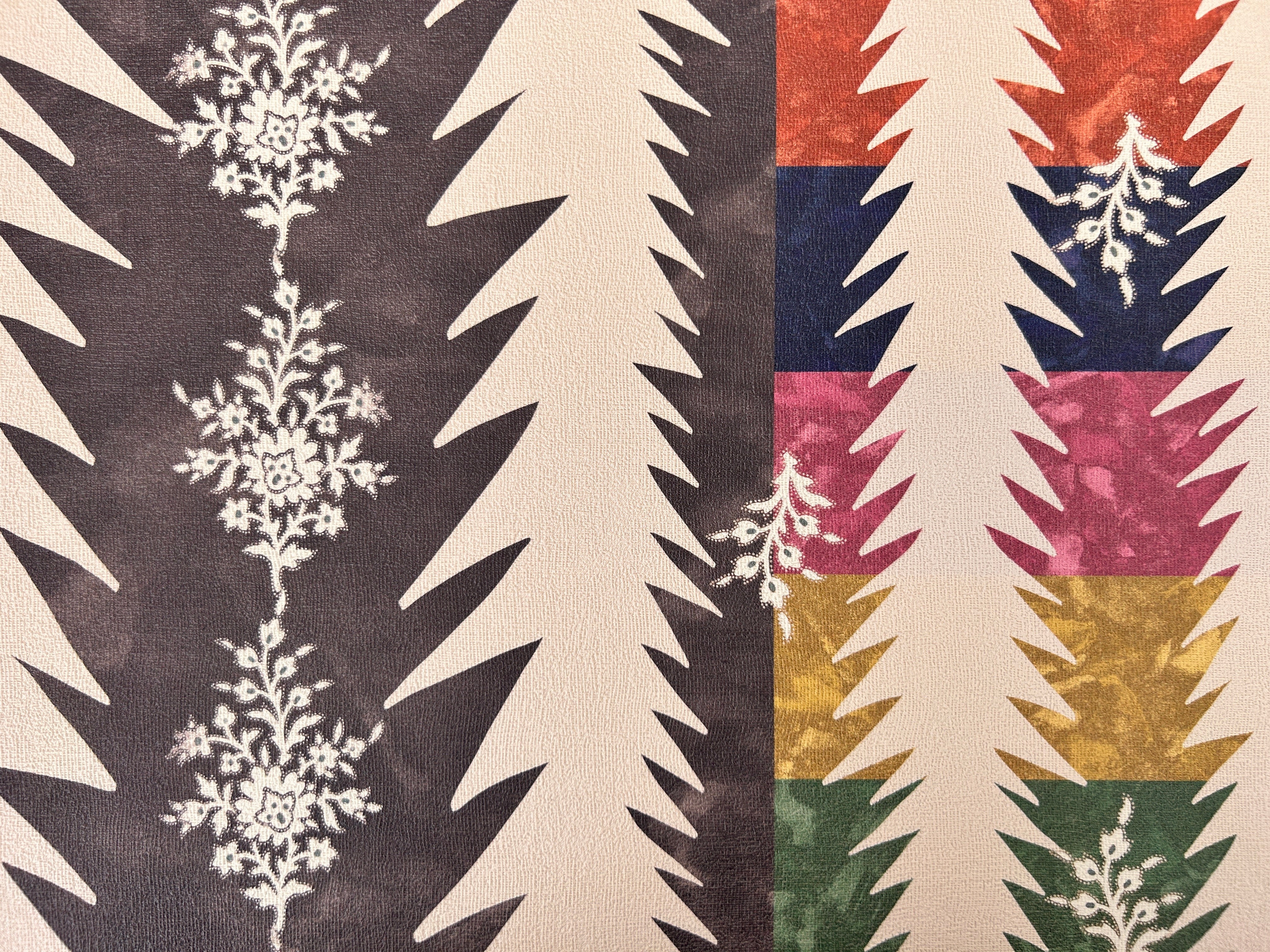 Presenting Atria Rus, a unique variation that combines one large and four small Atria stripes, adorned with delicate white embroidery reminiscent of old-world charm. This intricate design seamlessly marries the bold energy of the Atria pattern with the grace of vintage embroidery, creating a captivating visual story that adds a touch of sophistication to any space
