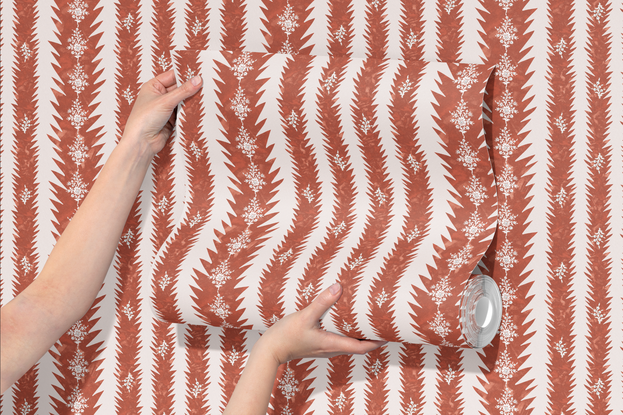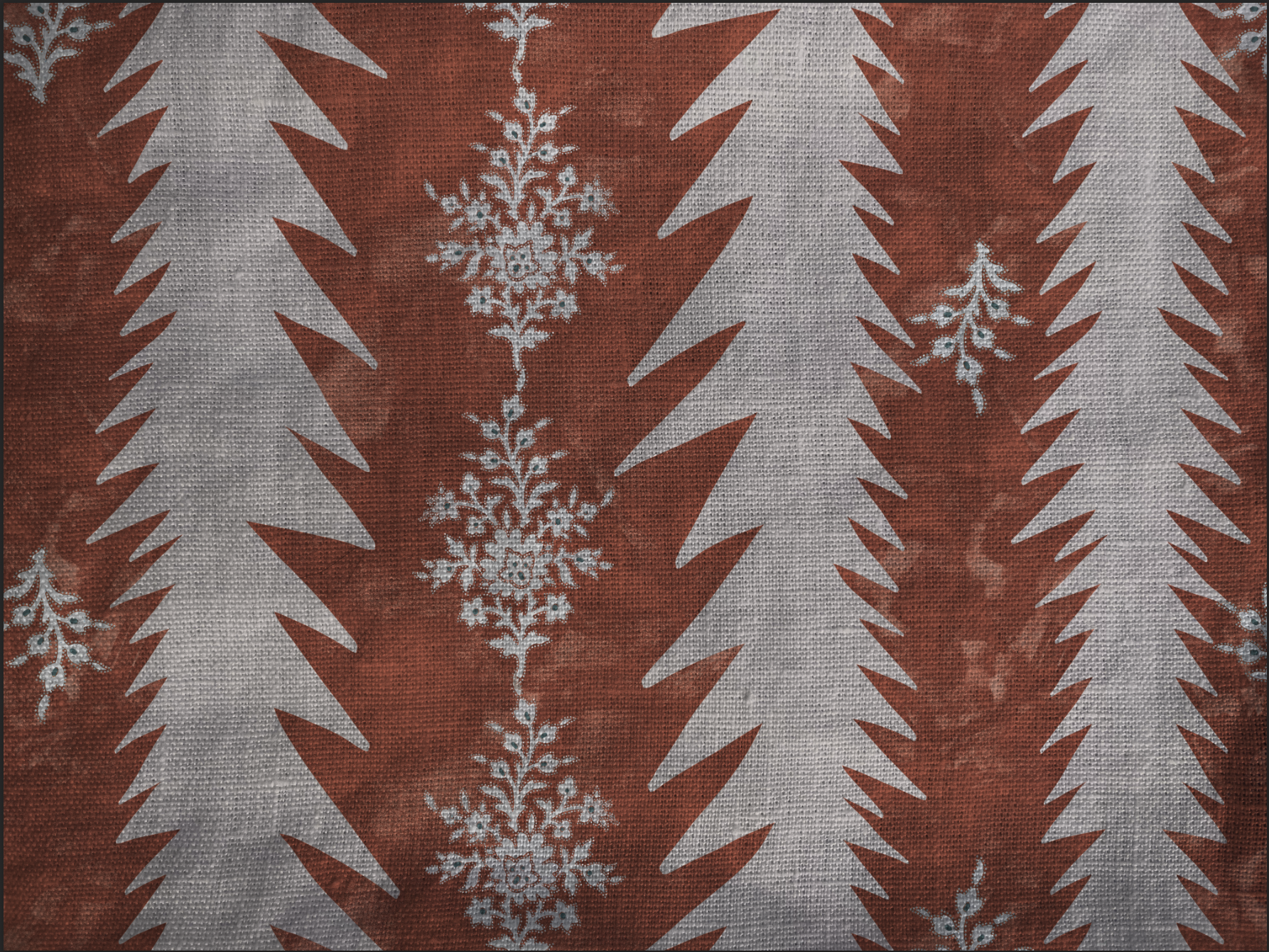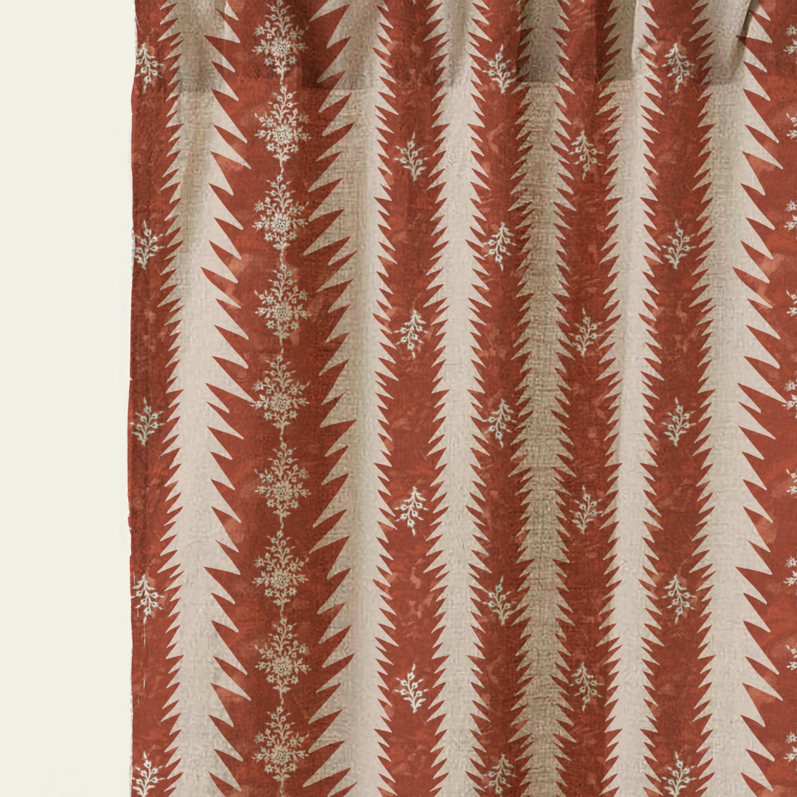 Presenting Atria Rus, a unique variation that combines one large and four small Atria stripes, adorned with delicate white embroidery reminiscent of old-world charm. This intricate design seamlessly marries the bold energy of the Atria pattern with the grace of vintage embroidery, creating a captivating visual story that adds a touch of sophistication to any space