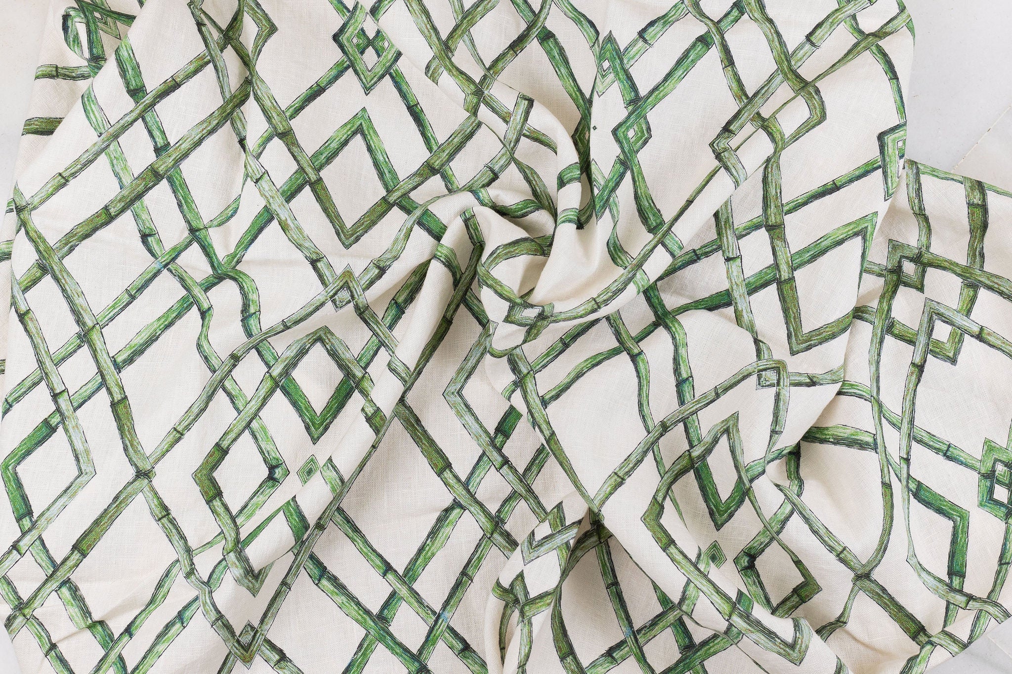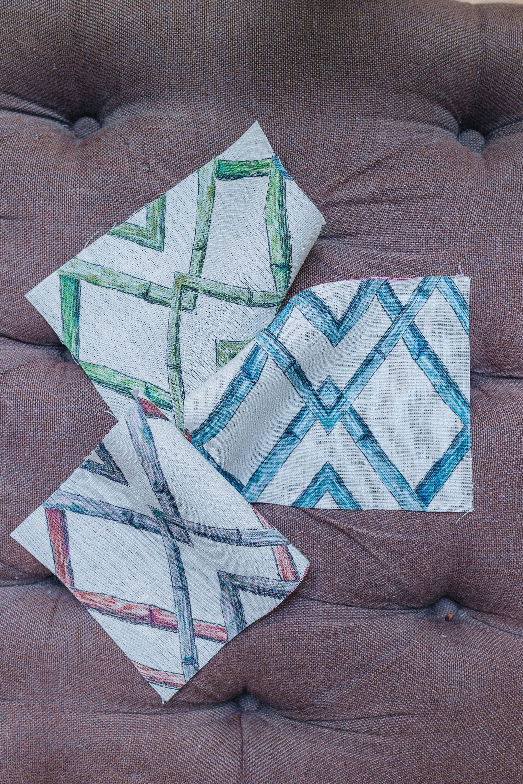 Introducing Bamboo Trellis, a design that exudes timeless elegance through its structured geometry. Inspired by classic lattice frameworks, this pattern showcases interlacing bamboo motifs that bring a sense of harmony and order to any space. Its understated sophistication makes it a versatile choice, seamlessly complementing both contemporary and traditional interiors. You may find this pattern in several colours: Ocean, Rosewood, and Moss. If you need to see a sample, send us an email at info@delacovadesign.com.
