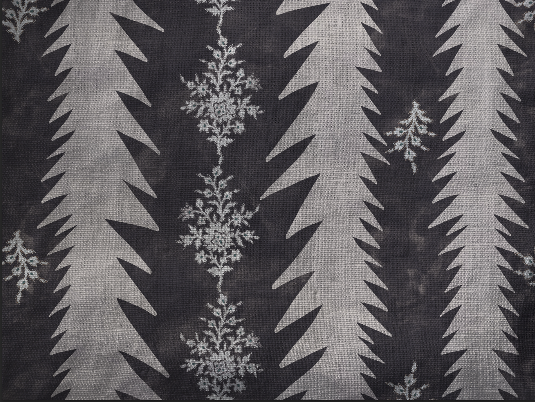 Presenting Atria Rus, a unique variation that combines one large and four small Atria stripes, adorned with delicate white embroidery reminiscent of old-world charm. This intricate design seamlessly marries the bold energy of the Atria pattern with the grace of vintage embroidery, creating a captivating visual story that adds a touch of sophistication to any space