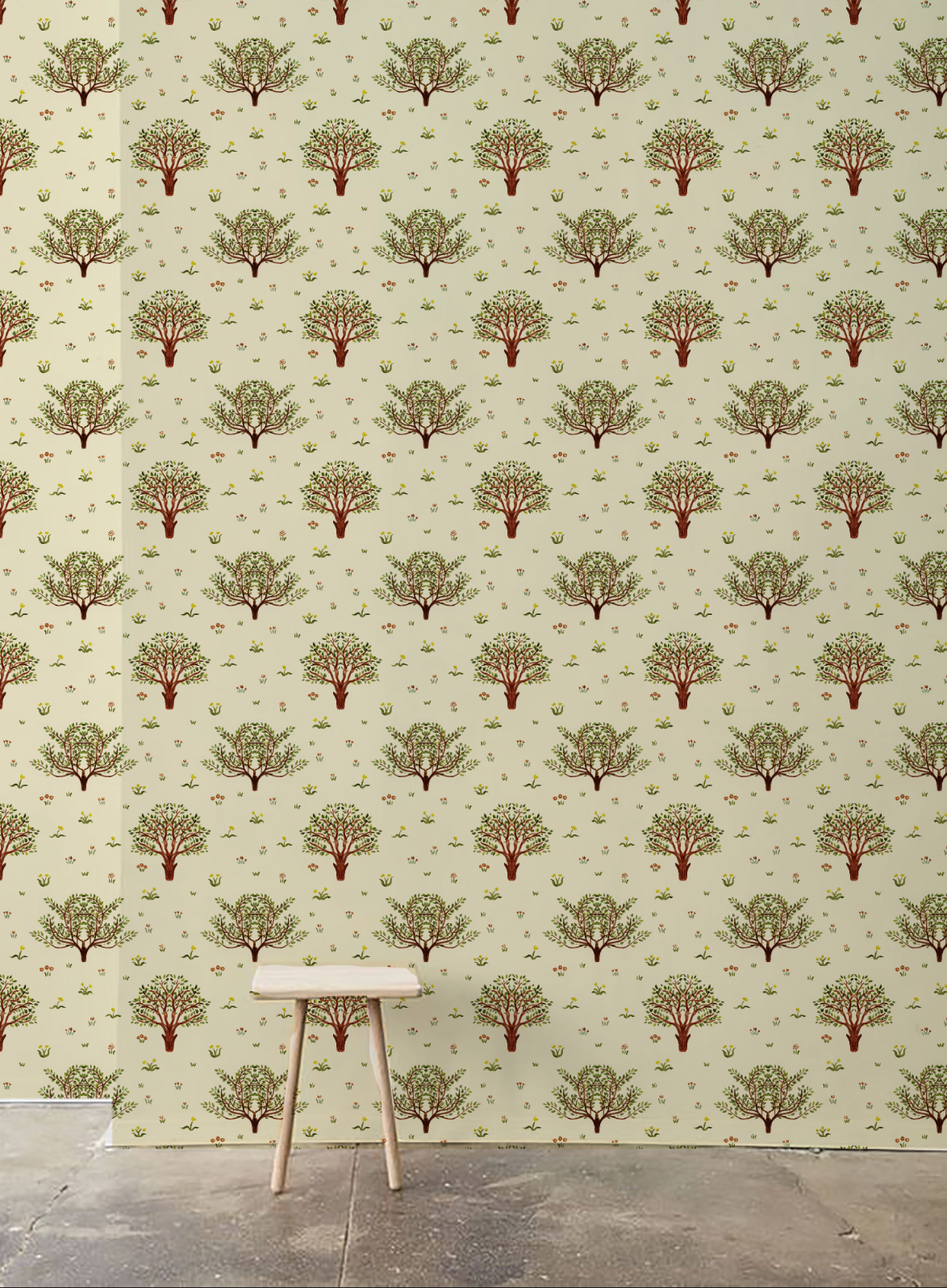 Any fabric pattern has a specific size, which repeats over and over across the wallpaper. The “repeat” is how many cm the pattern is before it starts over again. Repeat is measured both horizontally and vertically.