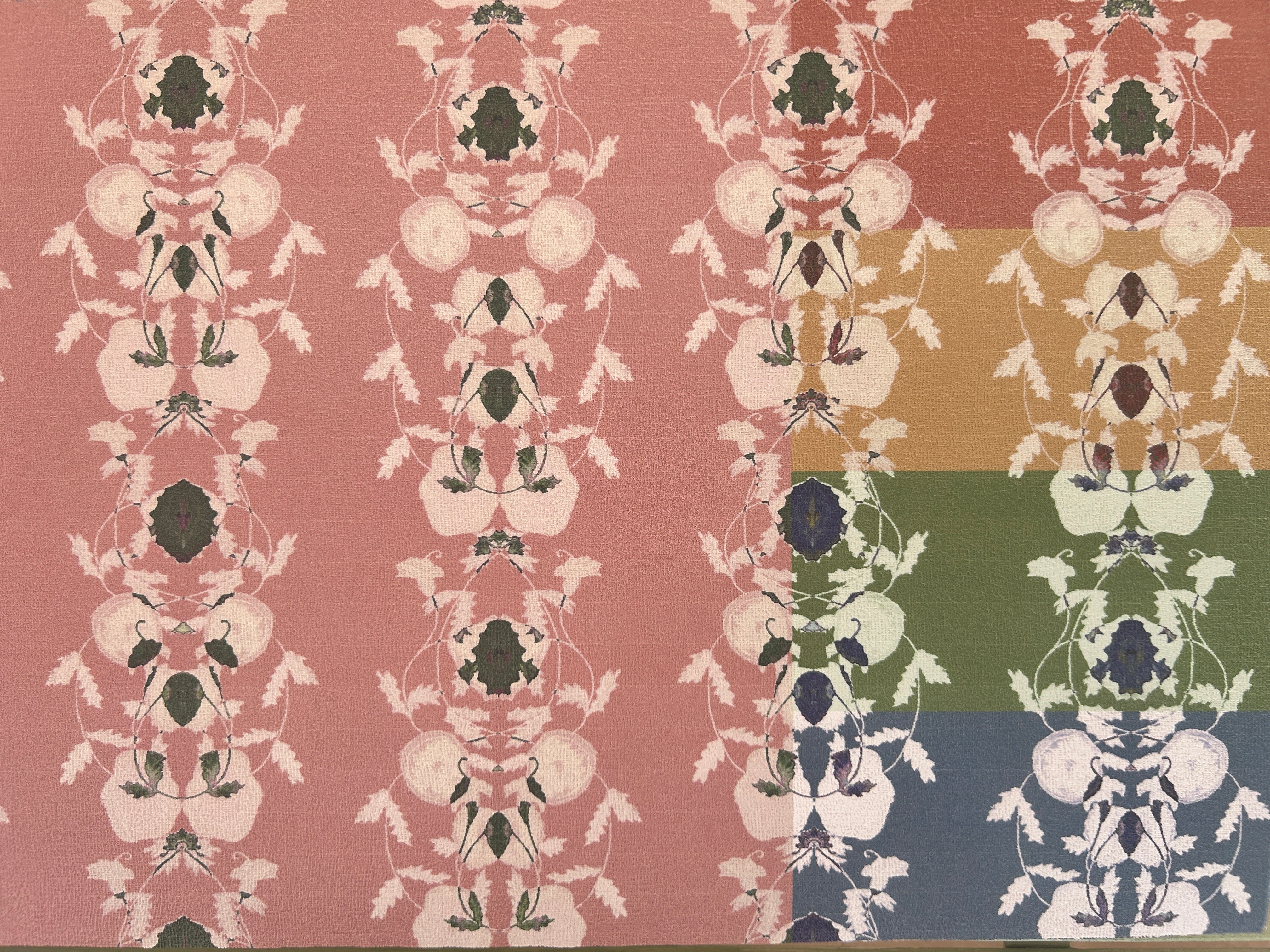 Introducing "Frank II," a captivating pattern where hand-painted poppies are delicately linked to form vibrant stripes, blending classic elegance with a burst of colourful charm