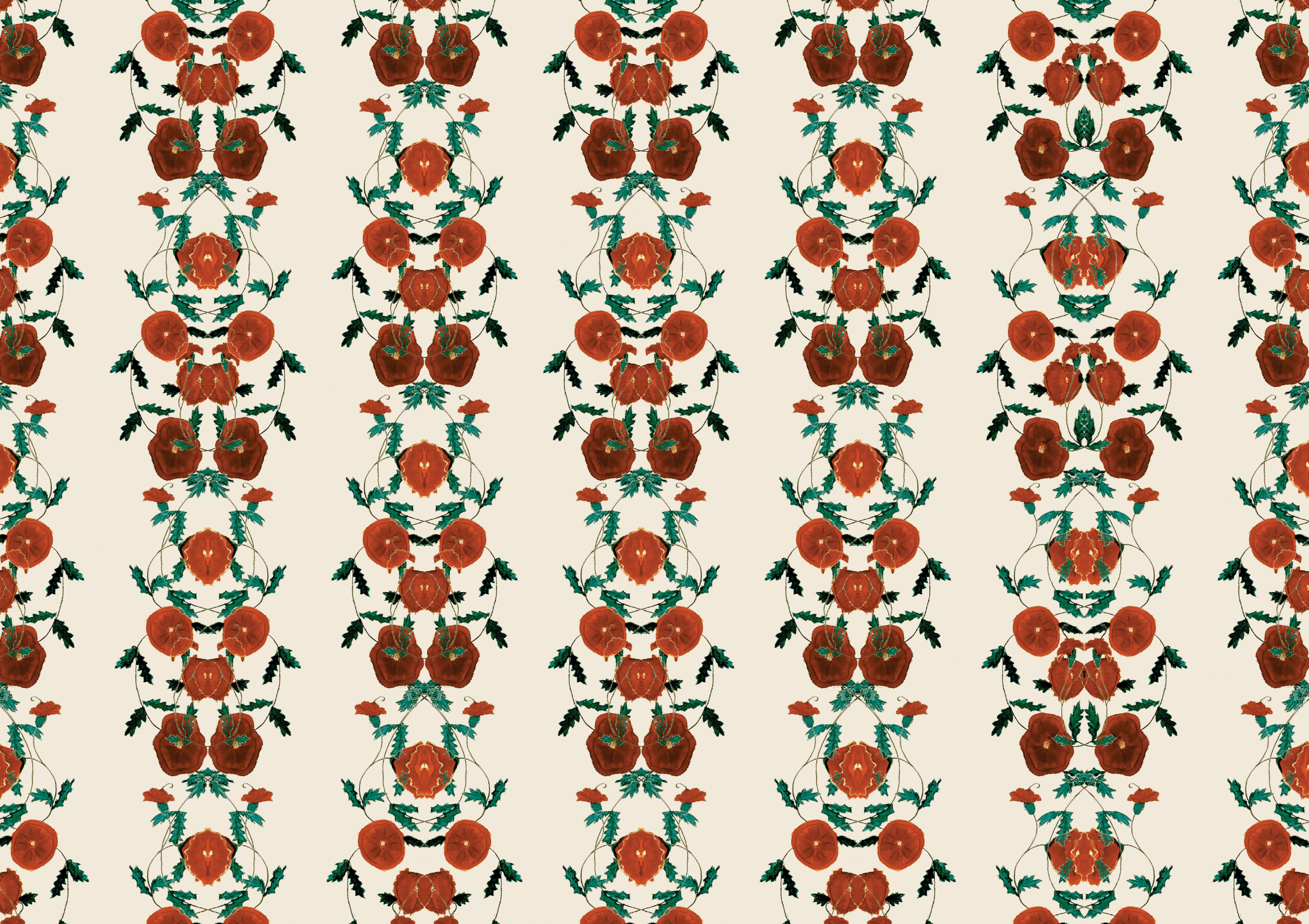 Introducing "Frank," a captivating pattern where hand-painted poppies are delicately linked to form vibrant stripes, blending classic elegance with a burst of colorful charm