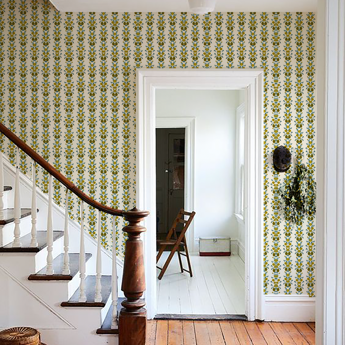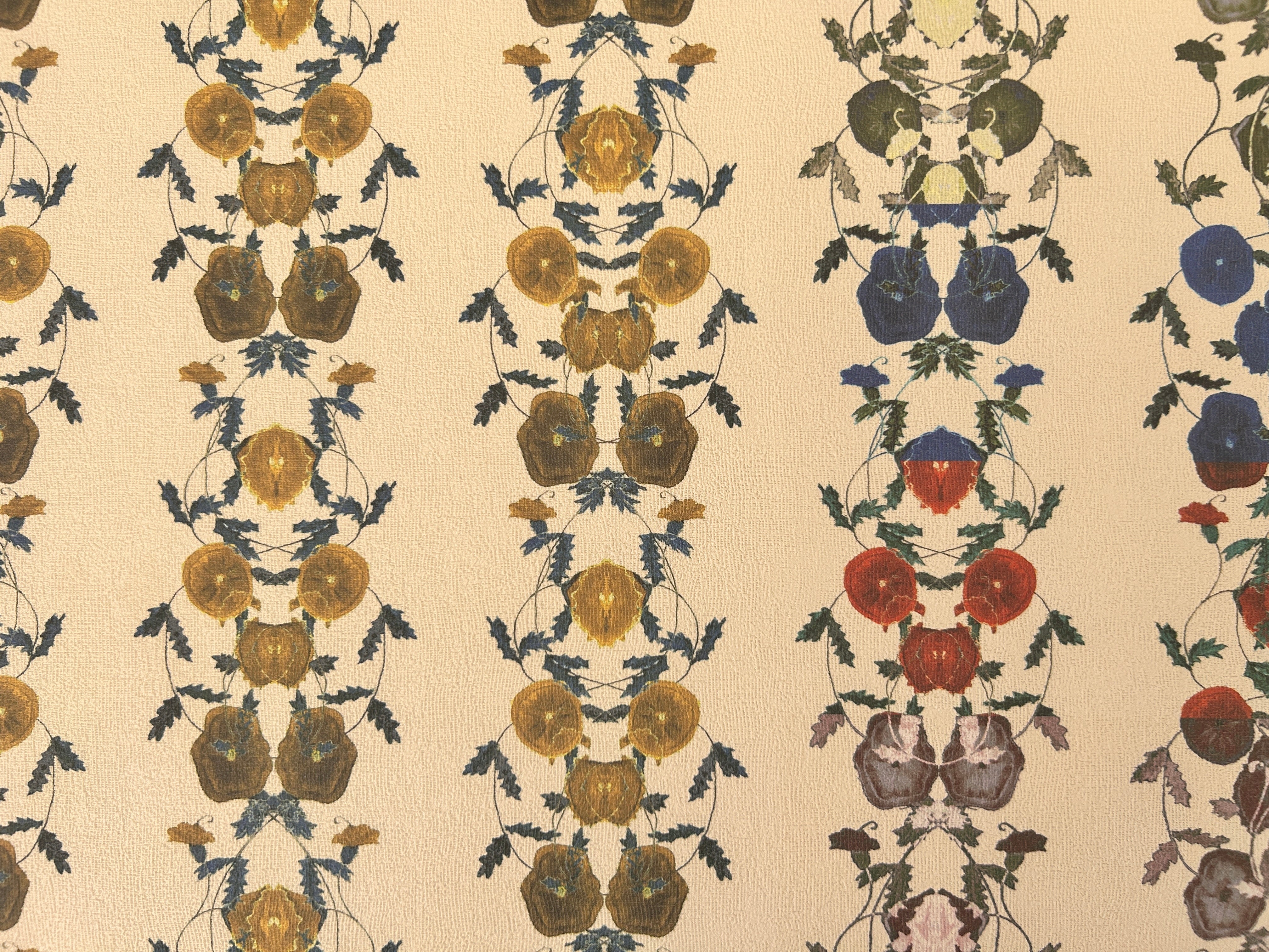 Any fabric pattern has a specific size, which repeats over and over across the wallpaper. The “repeat” is how many cm the pattern is before it starts over again. Repeat is measured both horizontally and vertically.