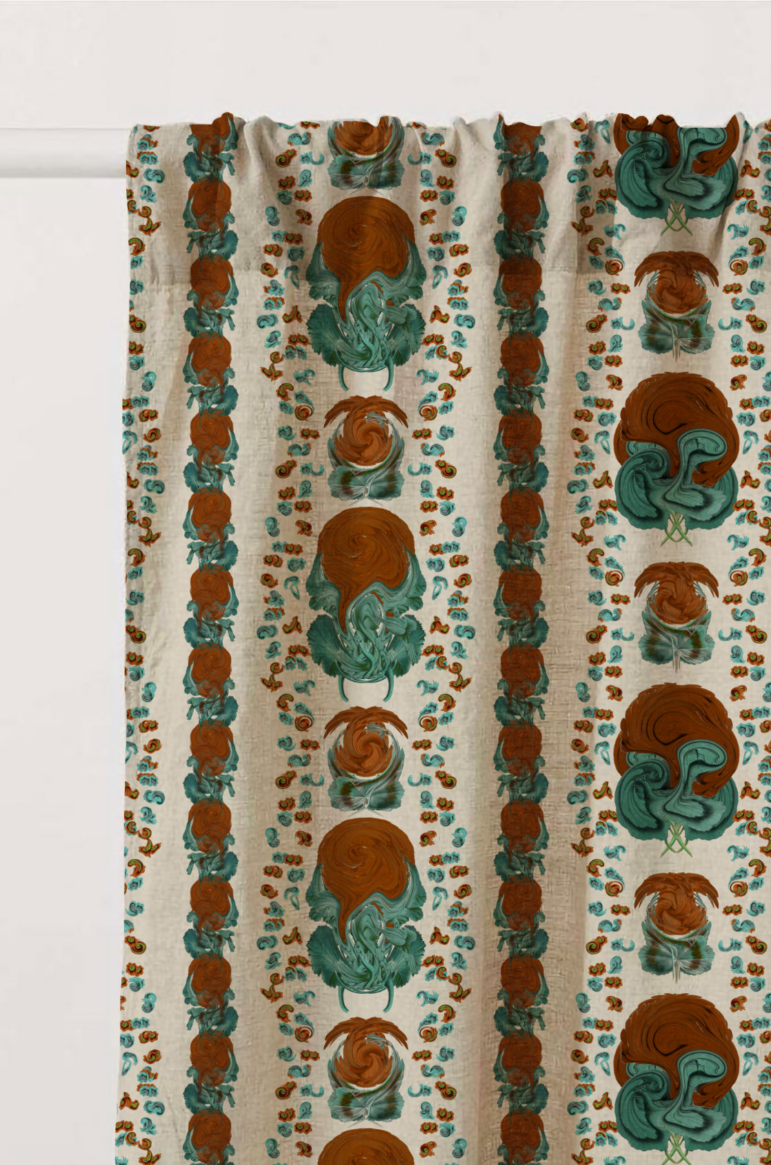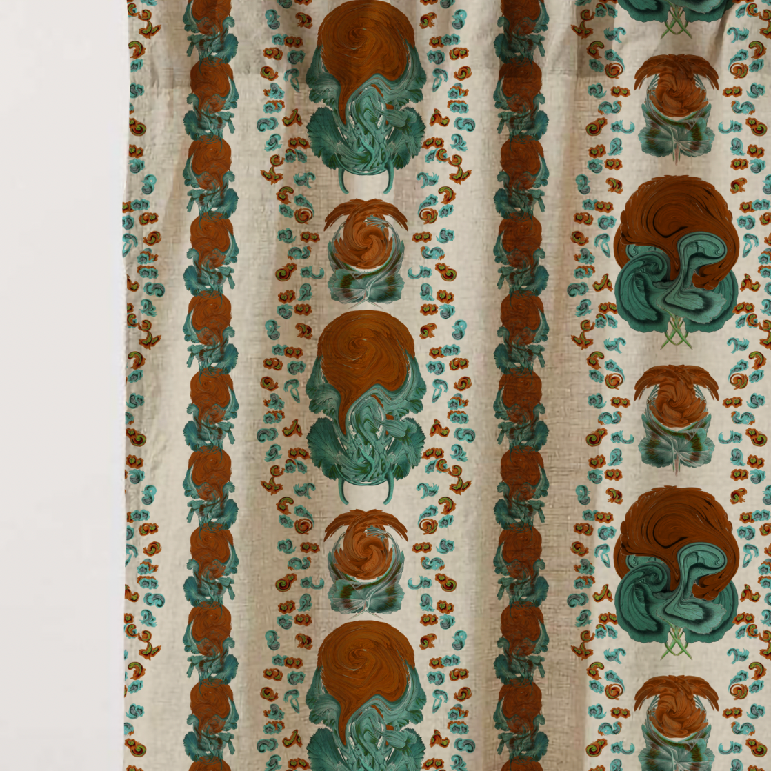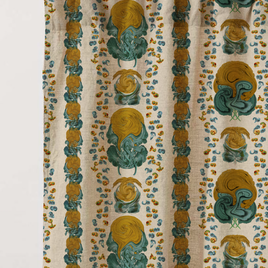 Introducing Geranium, a bold floral stripe inspired by Mediterranean gardens and vintage botanical prints. The pattern features stylised blooms that echo the swirling forms of marbled pigment, creating vertical lines full of life and colour. Geranium is ideal for spaces that embrace joy and personality — from dramatic headboards to playful curtains. Available in Clay, Crimson, Cobalt, and Saffron. If you need to see a sample, send us an email at info@delacovadesign.com.