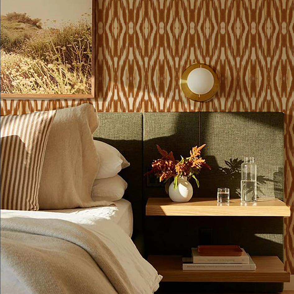 Introducing Ikat, a bold yet timeless design inspired by traditional dyeing techniques. With its organic symmetry and striking vertical lines, this pattern brings a sense of warmth and artisanal texture to the space. Ikat is both grounding and dynamic — a perfect statement for interiors seeking depth and character. Available in Sand, Emerald, Ink, Rust, and Toffee. If you need to see a sample, send us an email at info@delacovadesign.com.