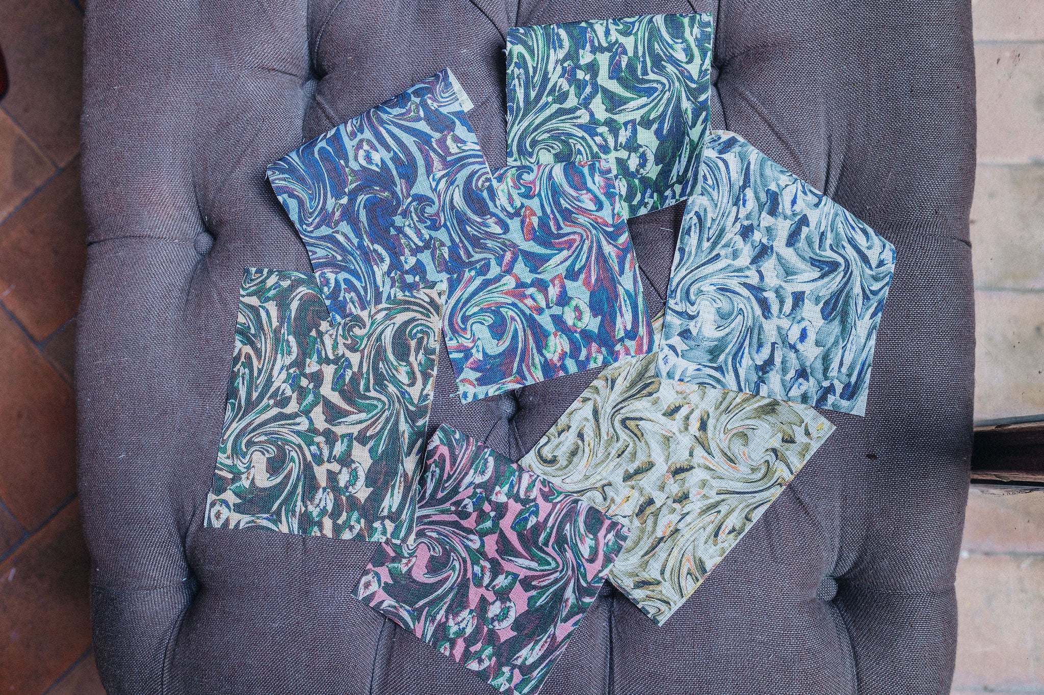 Introducing Marble Kiss, a richly expressive design that evokes the swirling beauty of hand-marbled paper — with a playful twist. Hidden within the fluid pattern are delicate lips, adding a subtle and unexpected touch of whimsy. Ideal for cushions, and curtains, this bold yet elegant fabric brings movement and personality to any space. Please note: this design is currently available in fabric only. If you're interested in wallpaper, feel free to contact us. Available in Coral, Cloud, Sand, Marine, Clay, Forest, and Water. If you need to see a sample, send us an email at info@delacovadesign.com.