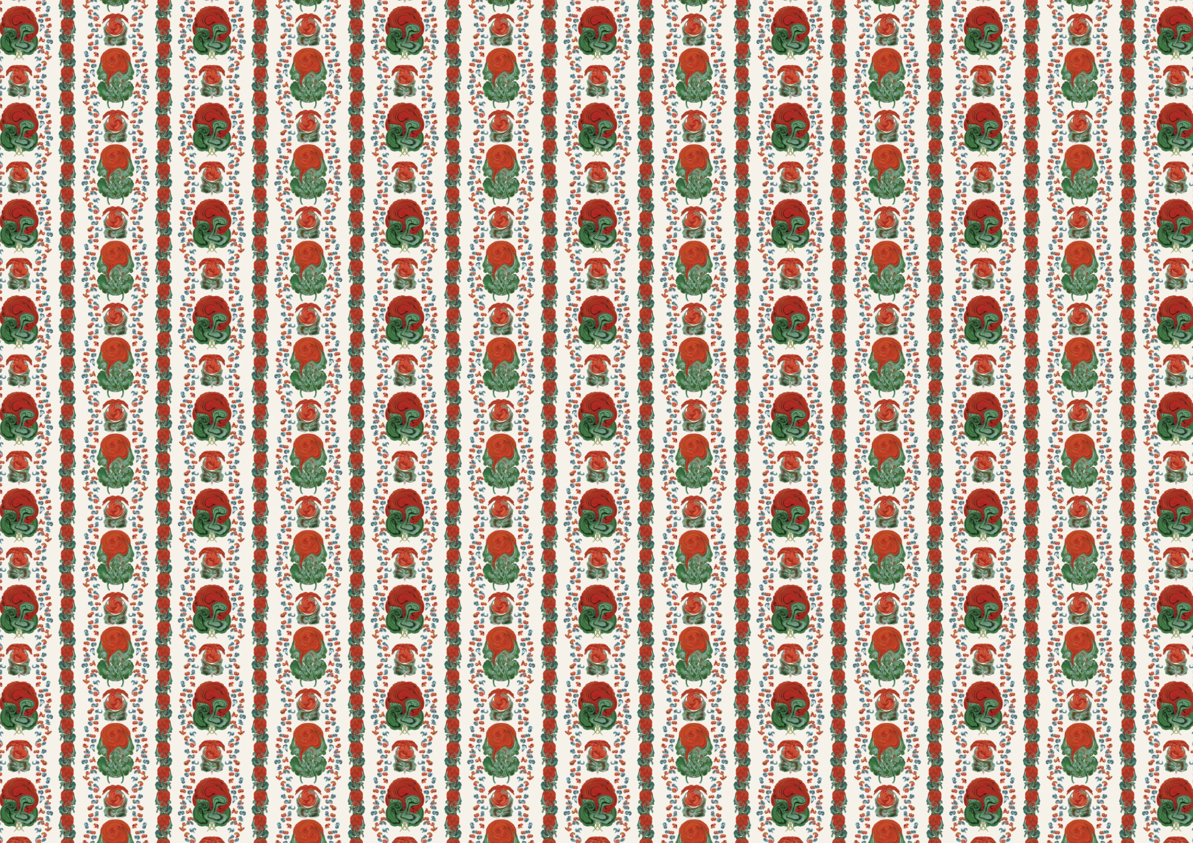 Any fabric pattern has a specific size, which repeats over and over across the wallpaper. The “repeat” is how many cm the pattern is before it starts over again. Repeat is measured both horizontally and vertically.