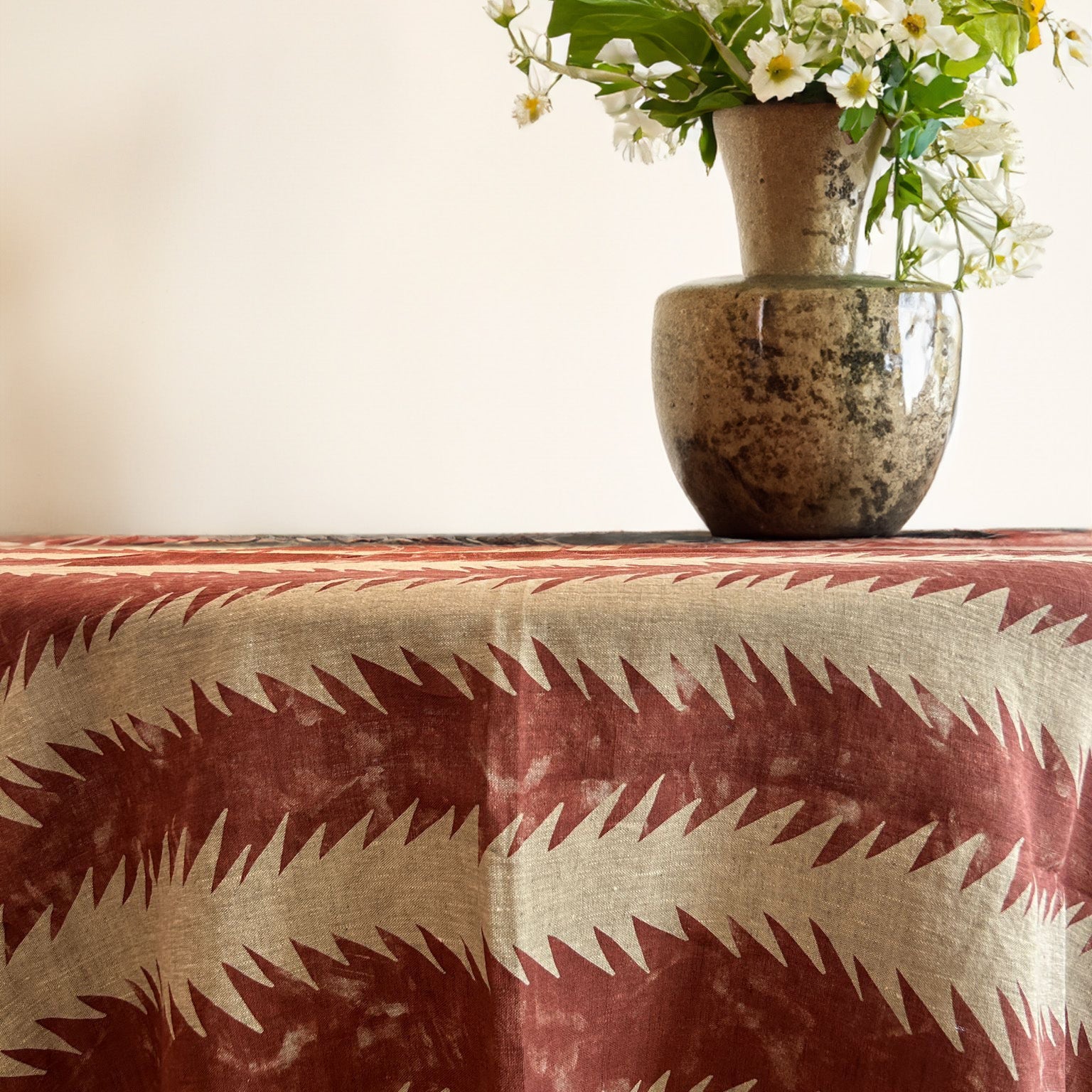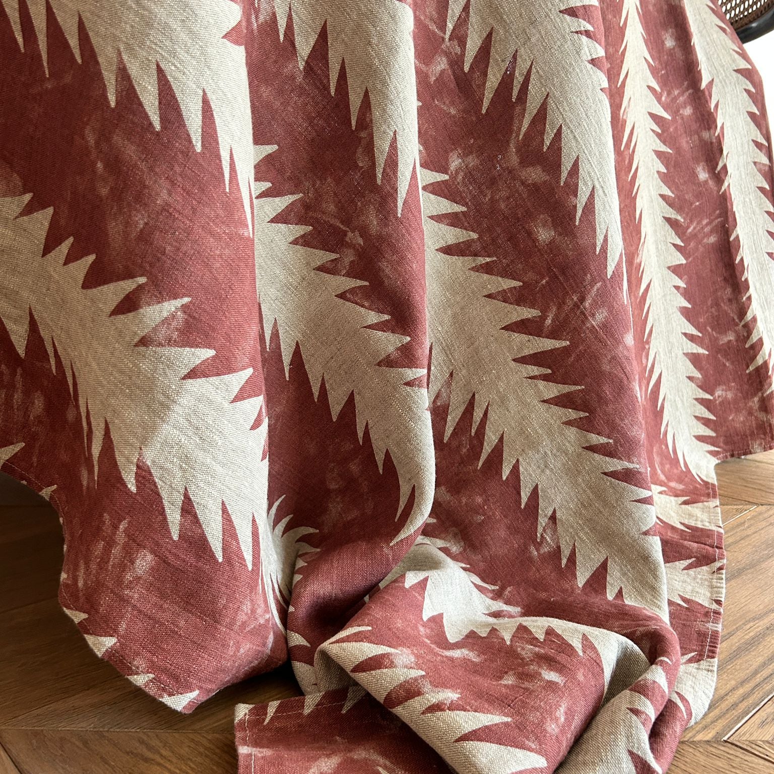 Linen is by far the most ecofriendly, natural material to use for fabric design, it should be washed at a temperature no higher than 40°C. If needed, iron it while slightly damp and try to dry it on a flat surface.