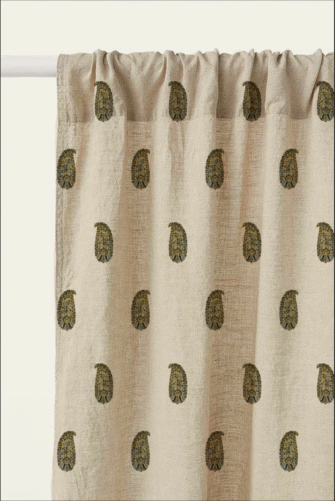 Paisley pattern, a timeless 18th-century design reimagined for modern interior decoration, where the classic elegance of paisley seamlessly transforms any space, inviting you to envision its charm adorning the walls and linen of your own home.