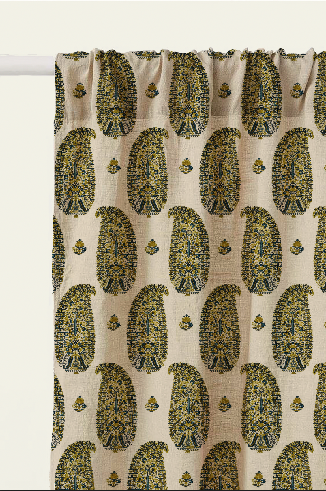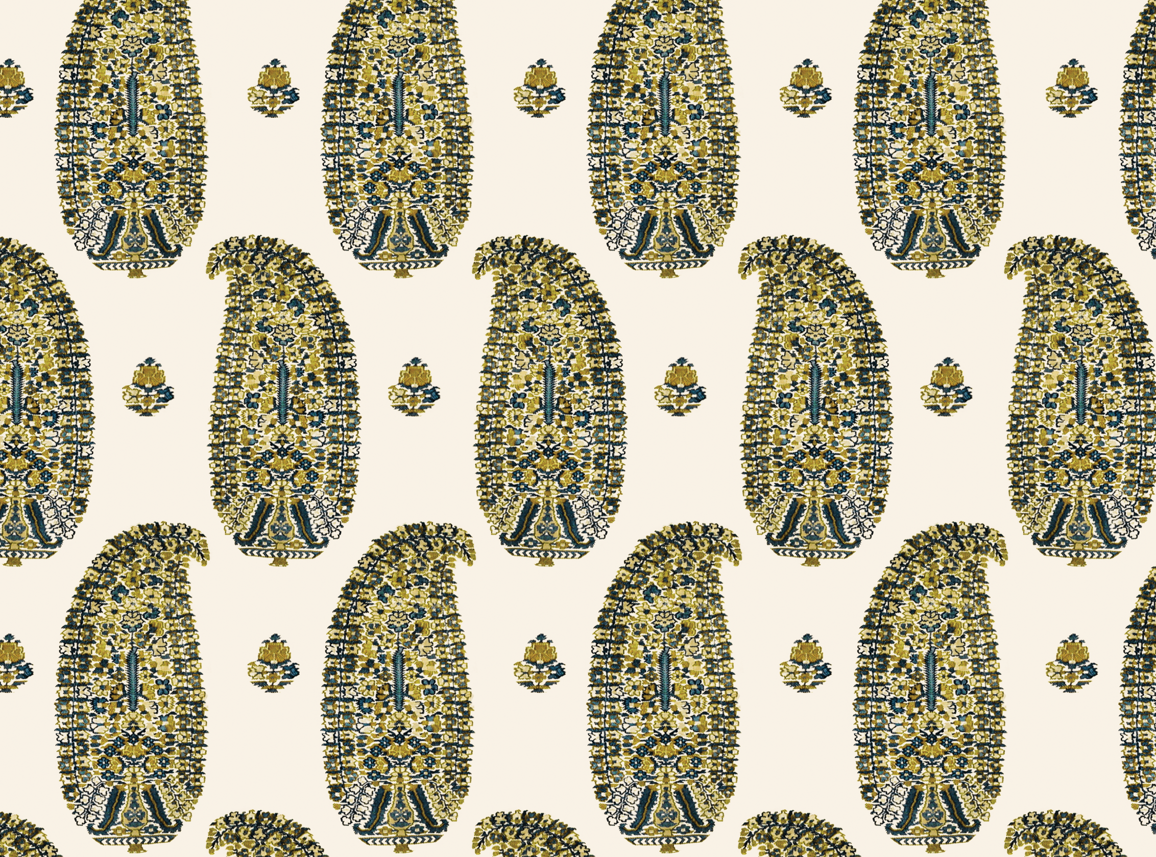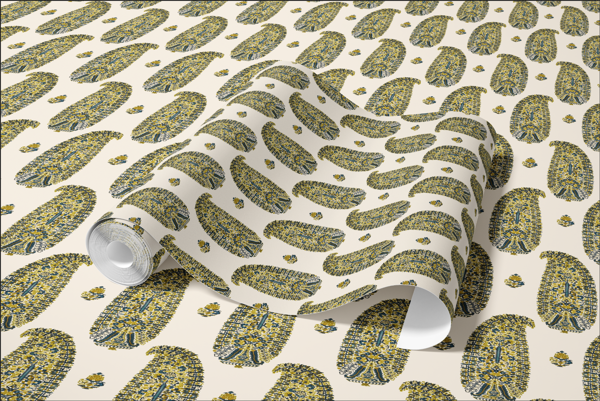 Paisley pattern, a timeless 18th-century design reimagined for modern interior decoration, where the classic elegance of paisley seamlessly transforms any space, inviting you to envision its charm adorning the walls and linen of your own home.